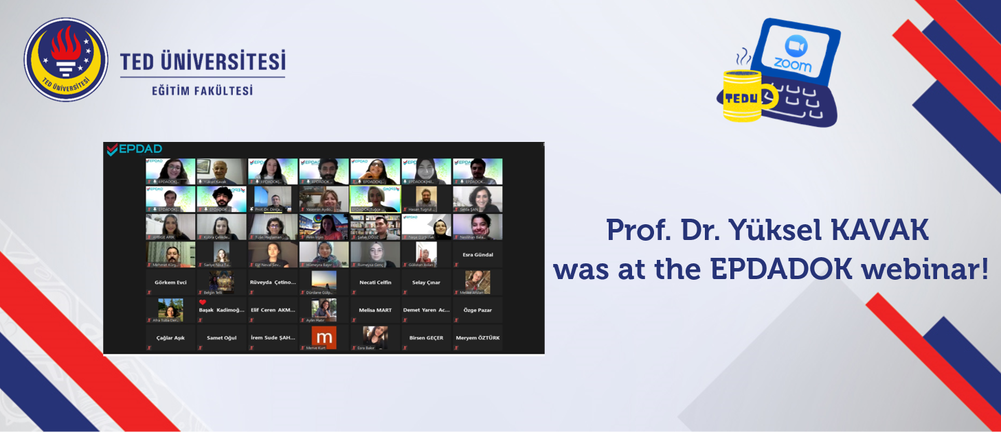 Öğretmenlik Eğitim Programları Değerlendirme ve Akreditasyon Derneği Öğrenci Komisyonu (EPDADOK) tarafından düzenlenen webinar serisinin 11 Haziran saat 20.00 da ikincisi gerçekleştirildi. TED Üniversitesi Eğitim Fakültesi Dekanı Prof. Dr. Yüksel KAVAK ve EPDAD Başkanı Prof. Dr. Cemil ÖZTÜRK'ün konuşmacı olduğu webinara yoğun bir katılım vardı. Prof. Dr. Yüksel KAVAK, konuşmasında eğitim fakültelerinde akreditasyonun önemi ve yükseköğretimde kalite kültürünün yaygınlaşmasıyla öğrencilerin akreditasyon süreçlerine aktif katılımı gerektiğini vurgularken Prof. Dr. Cemil ÖZTÜRK ise EPDAD'ın amacı ve vizyonu hakkında konuşmasını yaptı.