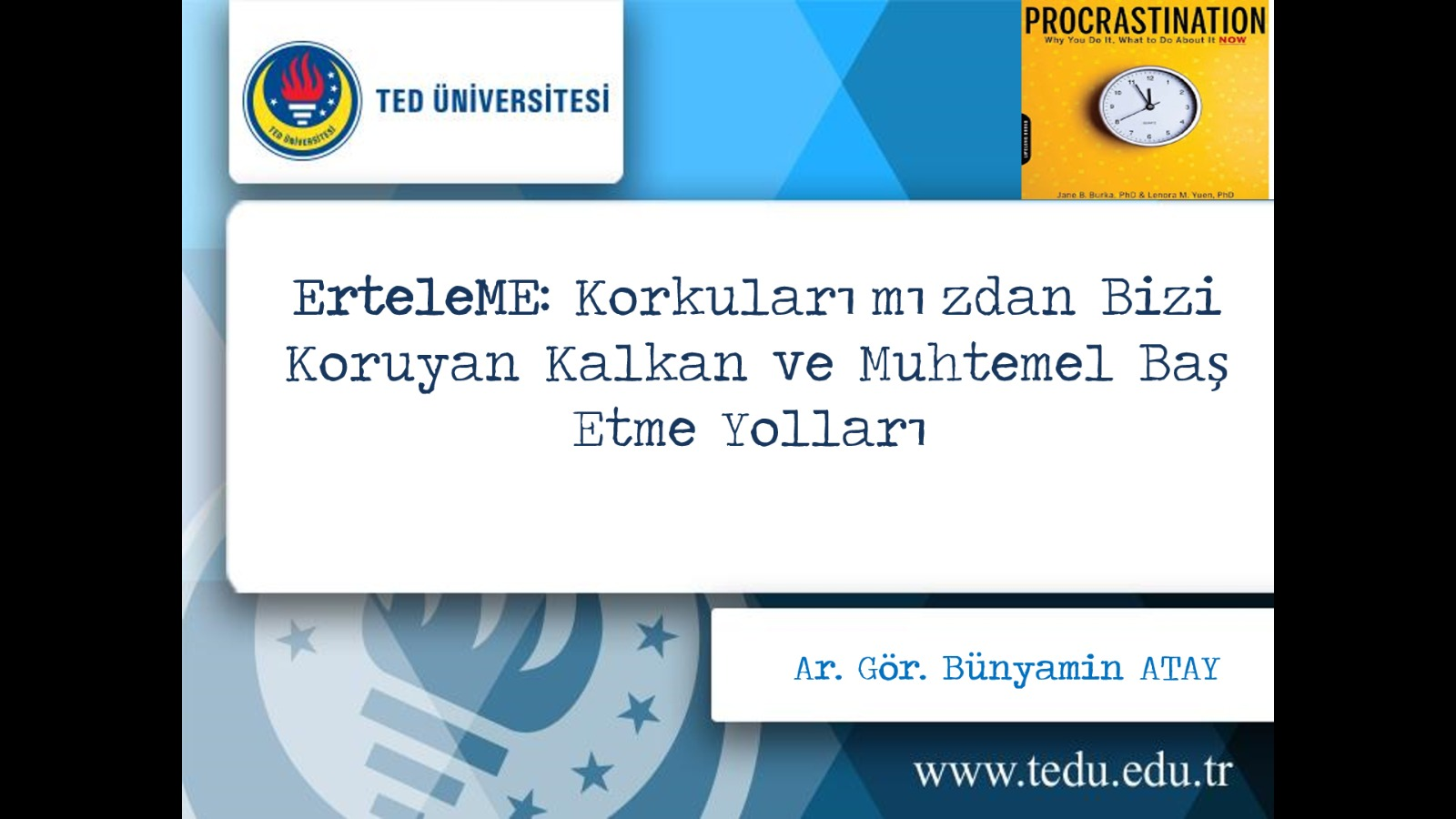 Res. Ass. Bünyamin Atay organized a seminar on “Procrastination: A Shield against the Our Inner Fears and Possible Ways of the Solution” for Başkent Teacher Training Workshop series on November 30, 2020. In the first section of the seminar, the importance of time, the prevalence of procrastination and the role of procrastination in protecting us from confronting our inner fears had been explored. Then, several concrete steps which have the potential to solve the procrastination had been discussed.