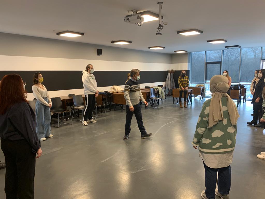 GENC 257 İnsan İlişkileri ve İletişim (Human Relations and Communication) dersi hibrit (yüz yüze ve çevrimiçi) olarak başladı. Öğr. Gör. Eray Eserol'un yürütücülüğünde başlayan derste öğrenciler, çeşitli alıştırma ve etkinlikler eşliğinde interaktif bir ders süreci geçirirken ders aynı zamanda kurulan kamera ve ses sistemi eşliğinde çevrimiçi ortamda da gerçekleşmektedir. Uygulamanın yapılacağı haftalarda COVID19 hijyen, maske ve mesafe kurallarına uygun bir şekilde yüz yüze gerçekleşmektedir. Diğer haftalarda ise çevrimiçi eğitim araçları aracılığıyla eğitimler sürdürülmektedir. Bu kapsamda Öğr. Gör. Eray Eserol'un ilk uygulama dersinden görseller aşsğıda yer almaktadır.