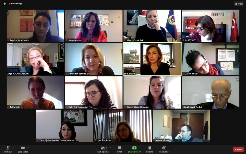 Fakültemiz yeni lisans programı geliştirme çalışmaları kapsamında, dış paydaşlarla görüşmelerimiz sürmektedir. Bu bağlamda 20 Ocak 2021 günü yapılan toplantıya, TED Genel Merkezi üst düzey yöneticileri Şule Akalın, Aysun Harvetioğlu, İK yöneticisi Betül Açıkalın ve Ankara Koleji Okul Müdürleri Ayşe Nalan Kaskan, Melek Kocatüfek ve Nazlı Deniz Yiğit ile fakültemiz yöneticileri ve bir grup öğretim üyesi katılmıştır. Toplantıda, Türkiye’deki öğretmen eğitim programlarının değerlendirilmesi, mezunlarımıza ilişkin değerlendirmeler, uygulama çalışmaları ve iyi bir öğretmenin sahip olması gereken yeterlikler üzerinde durulmuştur. Toplantıdaki tartışmalar, yeni program geliştirme çalışmalarımız için önemli dönütler sağlamıştır.