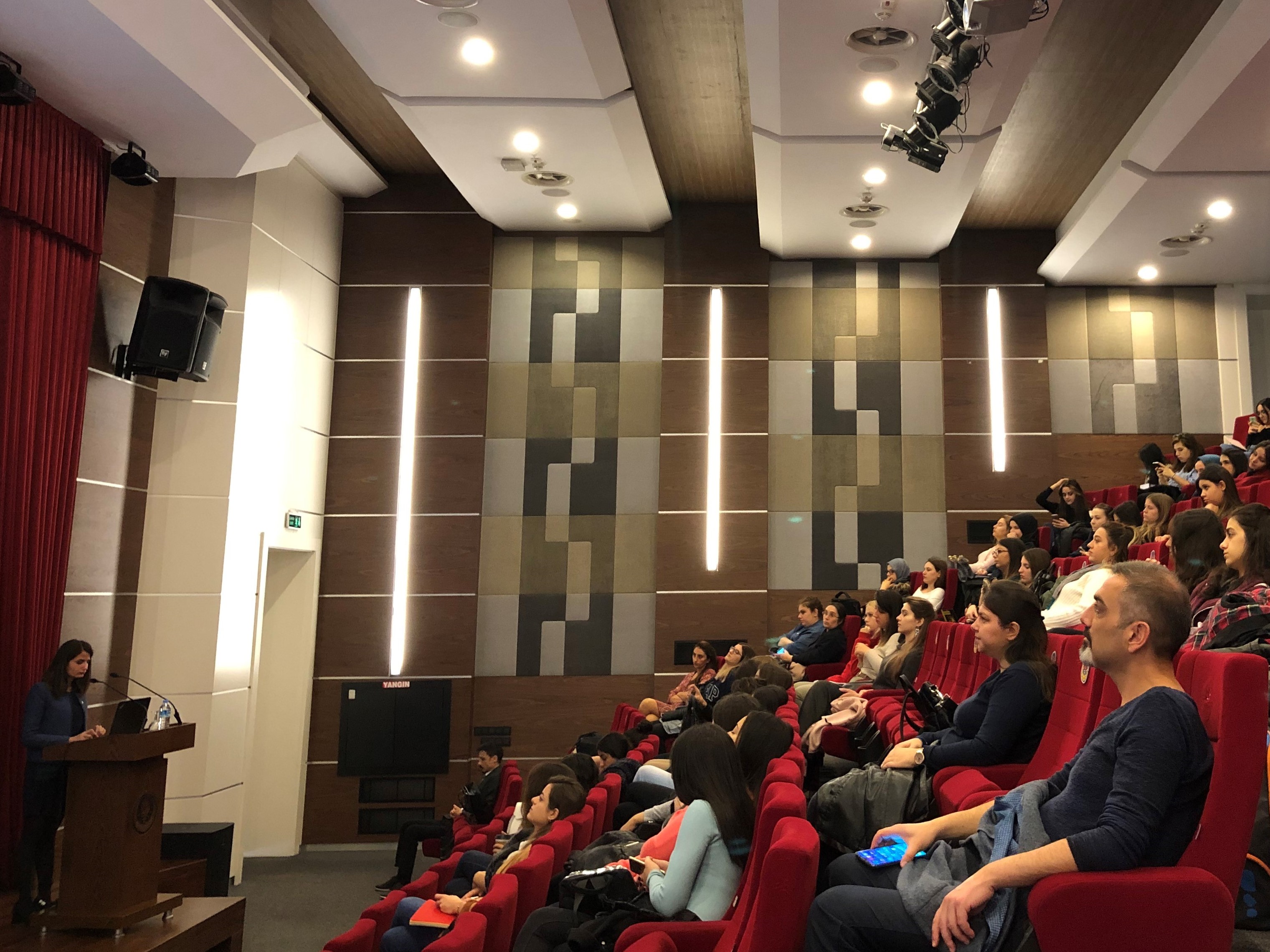 Dicle Çolpan, Türkiye’nin dört bir yanındaki TED Okullarına öğretmen ve psikolojik danışman seçilirken nelere dikkat edildiğini, sınav ve mülakat süreçlerinin nasıl ilerlediğini detaylı bir şekilde anlattı. Fakülte öğrencilerimize sadece TED Okullarına başvururken değil diğer başvurularında da faydalı olacak bilgiler verdi.