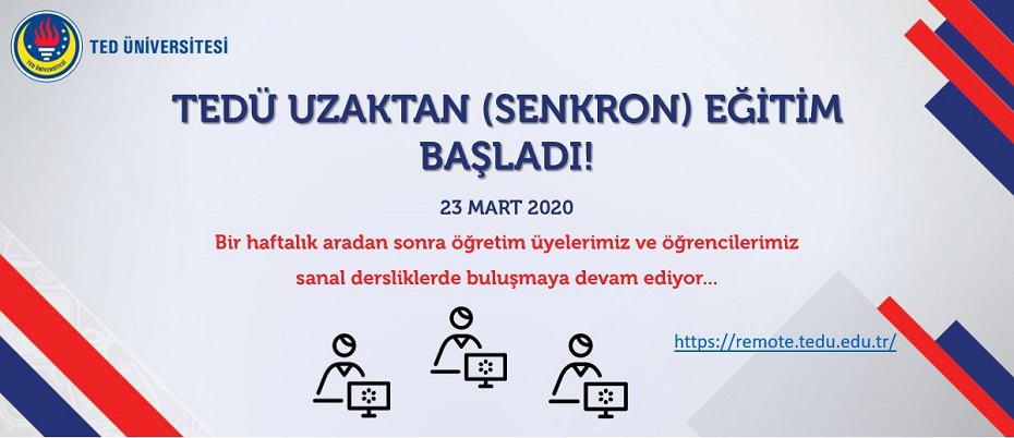 23 Mart 2020, Pazartesi günü başlayan uzaktan (senkron) eğitimlerle öğretim üyelerimiz ve öğrencilerimiz sanal dersliklerde buluşmaya devam ediyor.