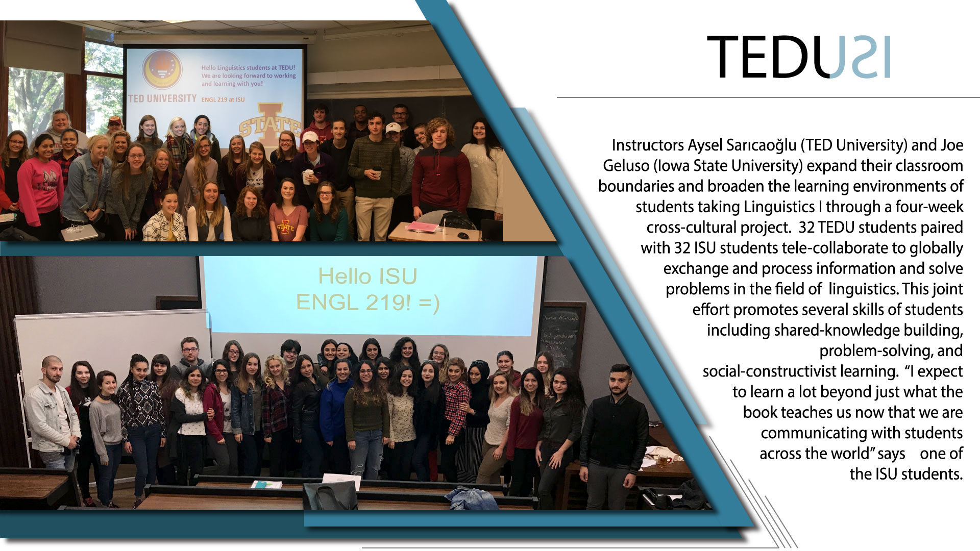 TED University students are co-learning linguistics with Iowa State University students through a cross-cultural tele-collaborative project supervised by instructors Aysel Sarıcaoğlu and Joe Geluso.