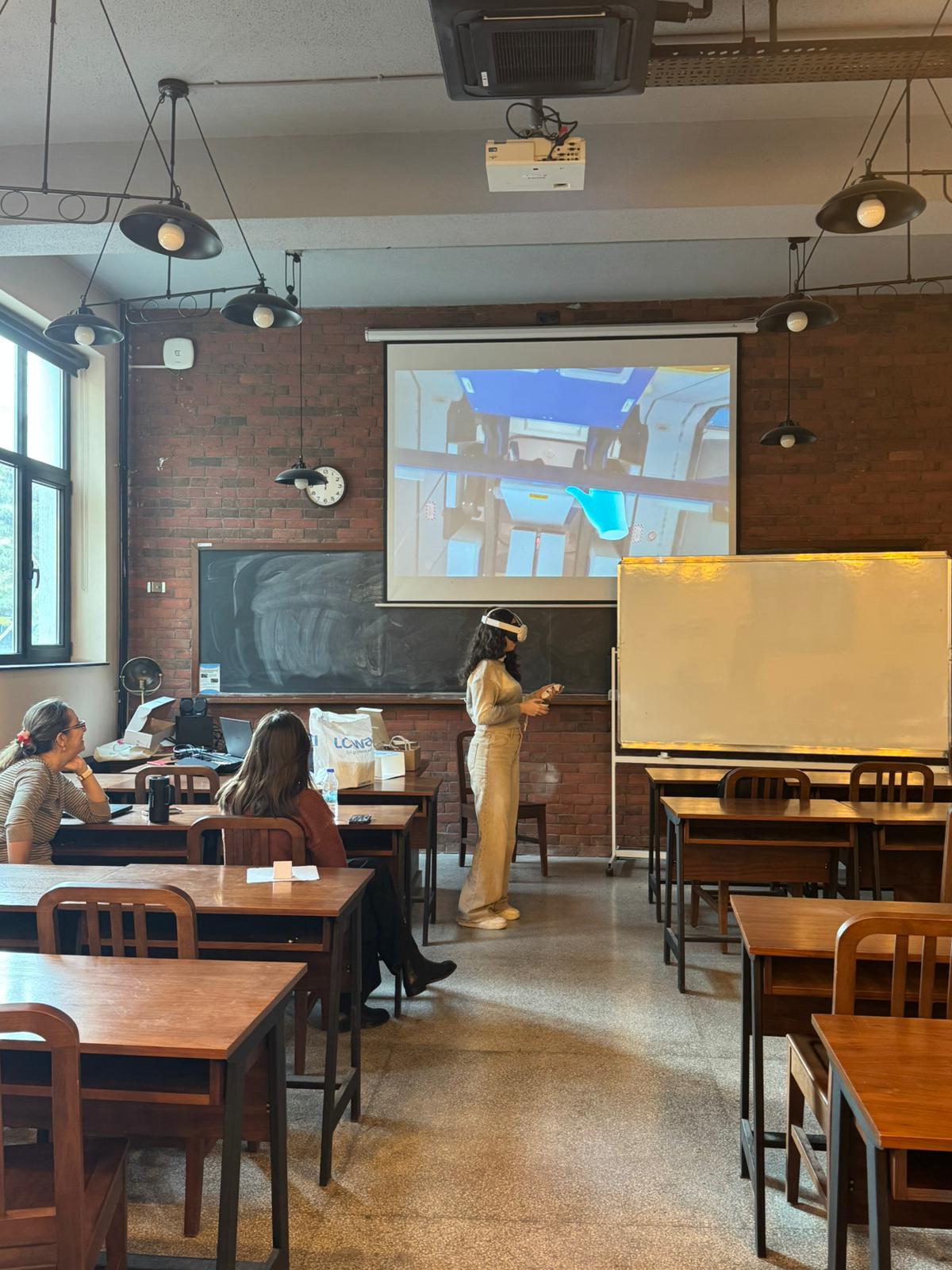 ELT 203 Teaching Reading Skills dersimizin teknoloji haftasında, Araştırma Görevlisi Sevim Berhiv Acay konuğumuz oldu. Ders kapsamında, eye-tracker ve virtual reality (VR) teknolojilerinin okuma öğretiminde nasıl kullanılabileceğine ilişkin bir workshop gerçekleştirildi. Öğrencilerimiz bu teknolojileri deneyimleme fırsatı bularak, dil öğretimine entegrasyonlarına dair değerlendirmelerde bulundu.